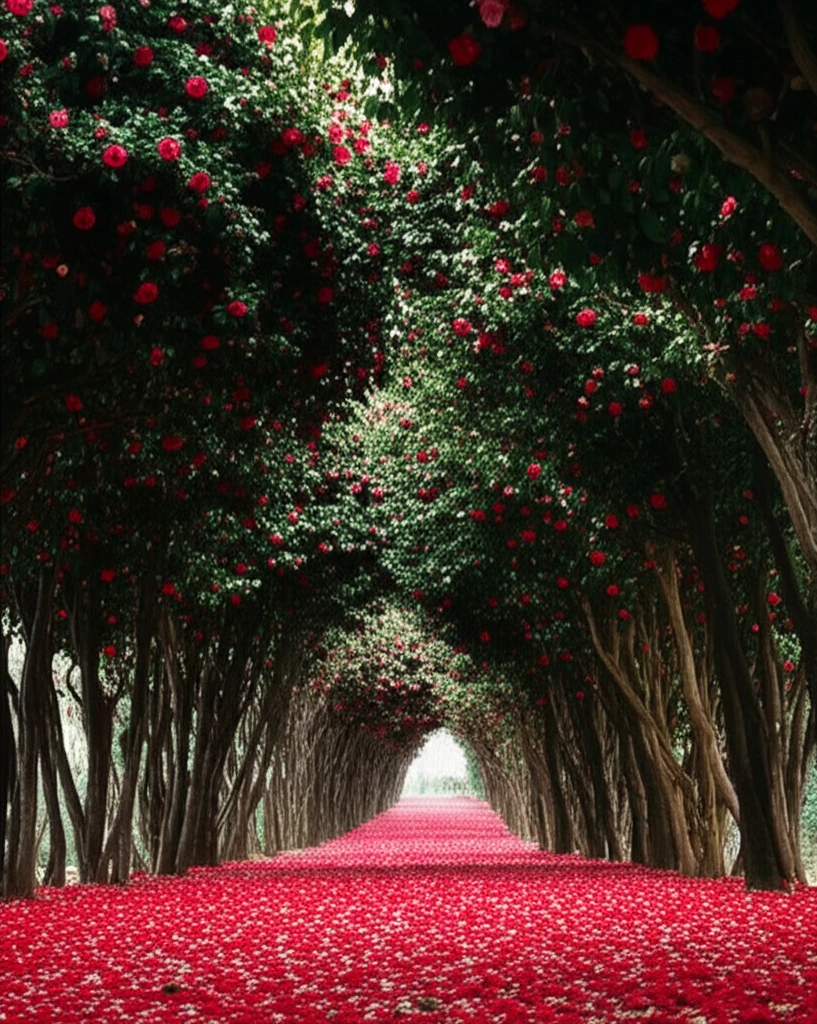하늘이 보이지 않을 정도로 빽빽한 동백꽃 터널을 걷다 보면, 바닥에 툭툭 떨어진 붉은 꽃송이들이 마치 여행자를 위해 깔아놓은 천연 레드카펫처럼 느껴지는 황홀한 경험을 하실 수 있어요.