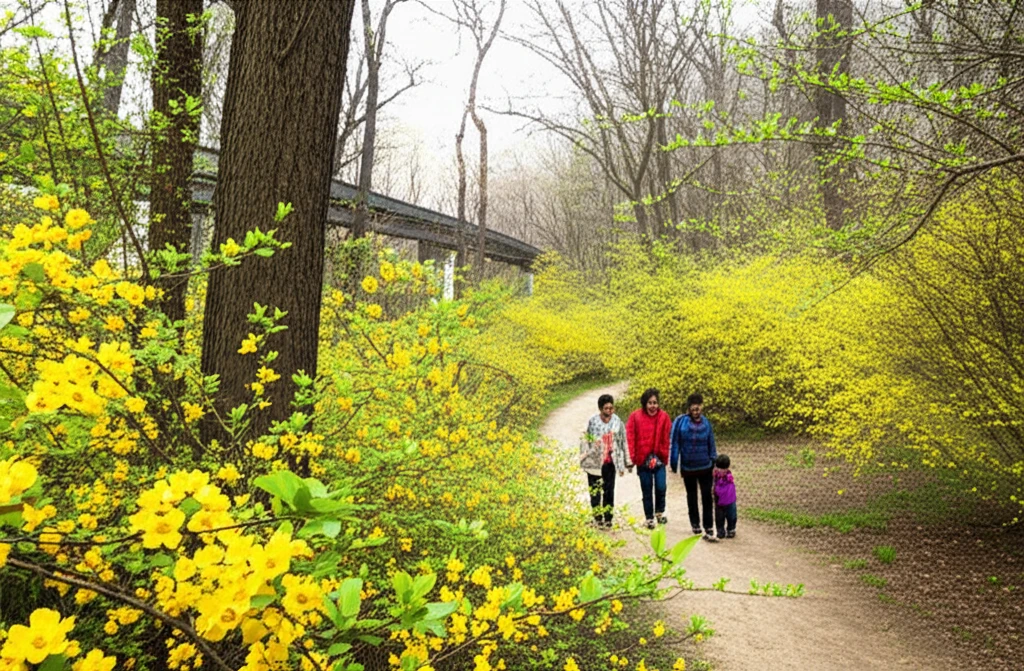 화담숲 하면 가을 단풍을 먼저 떠올리시겠지만, 3월의 이곳은 또 다른 생동감이 넘쳐나요. 특히 봄을 알리는 노란 산수유와 생강나무 꽃이 수줍게 피어오르기 시작해 산책로 곳곳이 금빛으로 물드는 장면은 정말 장관이거든요.